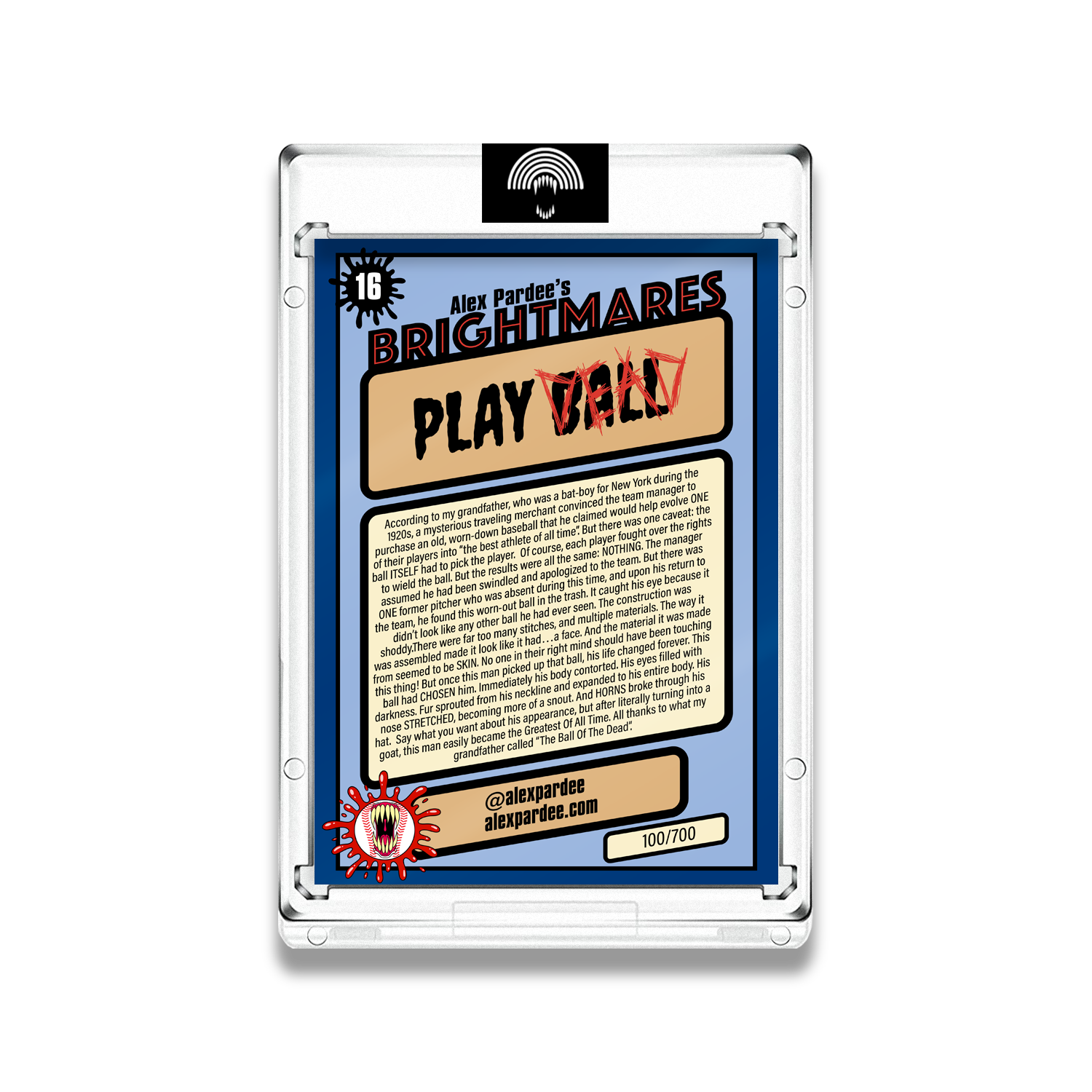 130pt Trading Card with Magnetic Case Included. Ships in exclusive Alex Pardee packaging.